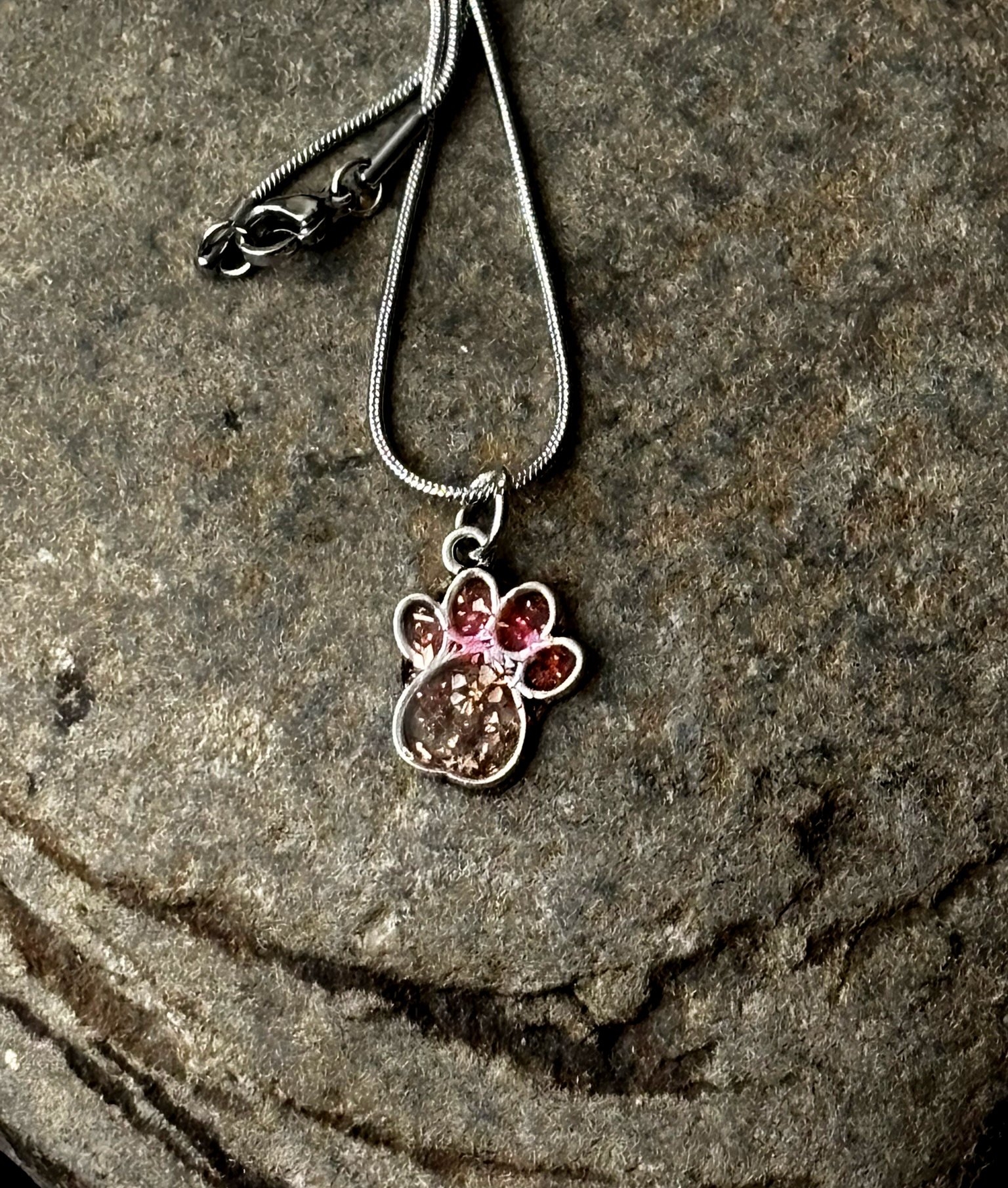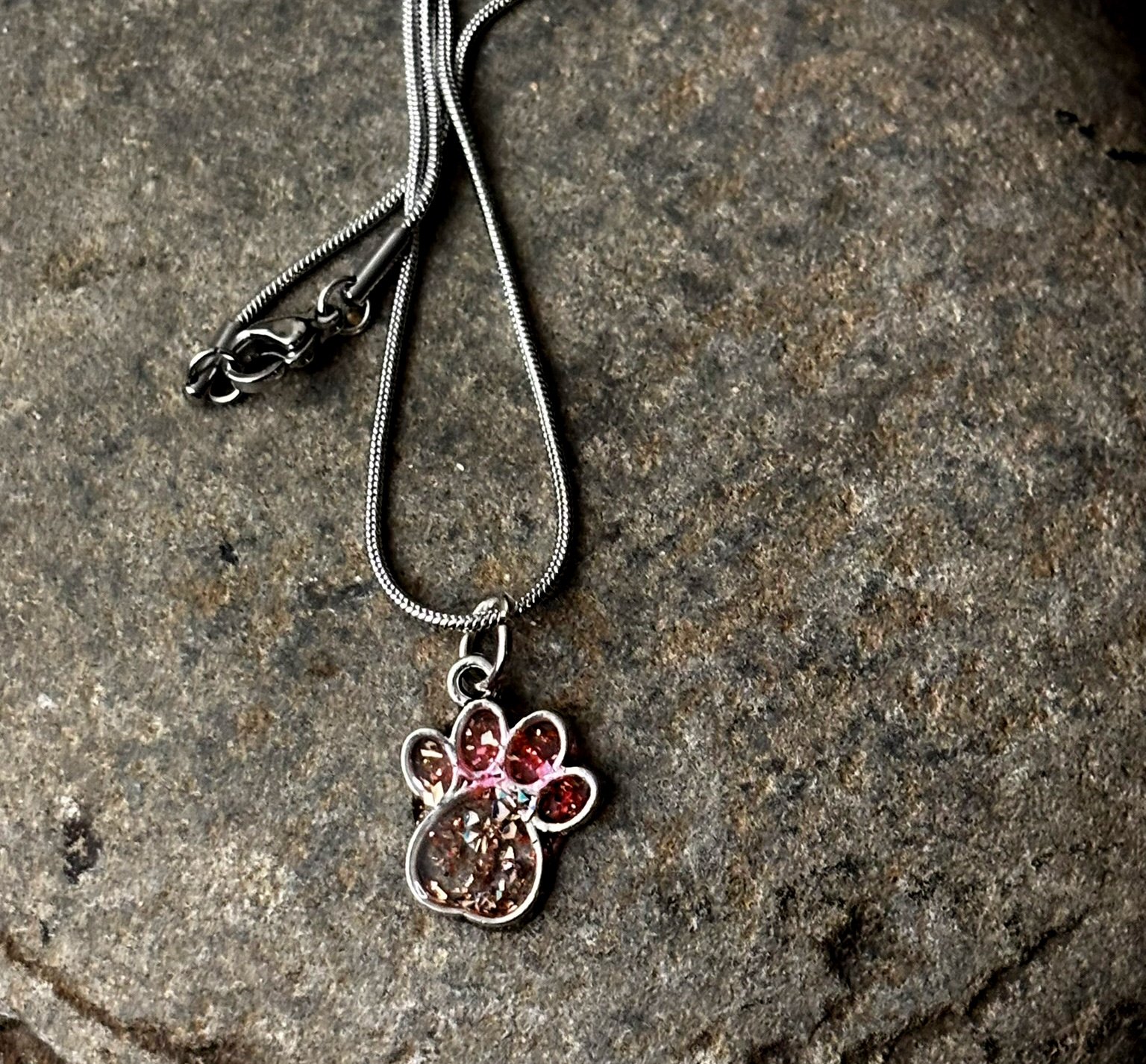 Includes: 15mm by 17mm Small Stainless Steel Dog Paw Memory Necklace