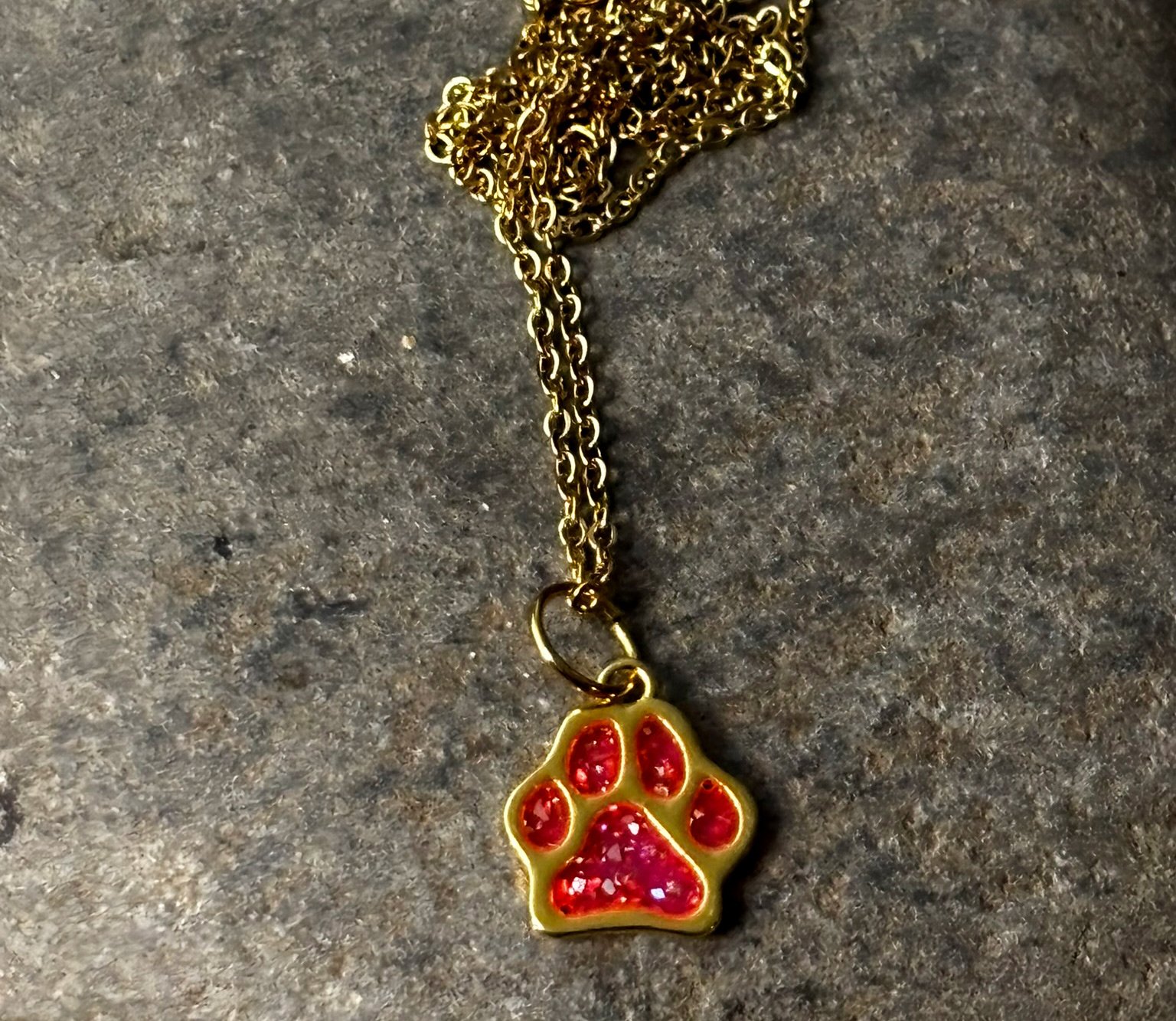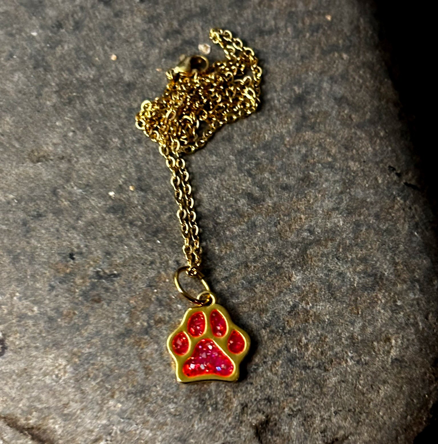 Includes: 19mm by 17mm Medium Stainless Steel Dog Paw Memory Necklace Gold