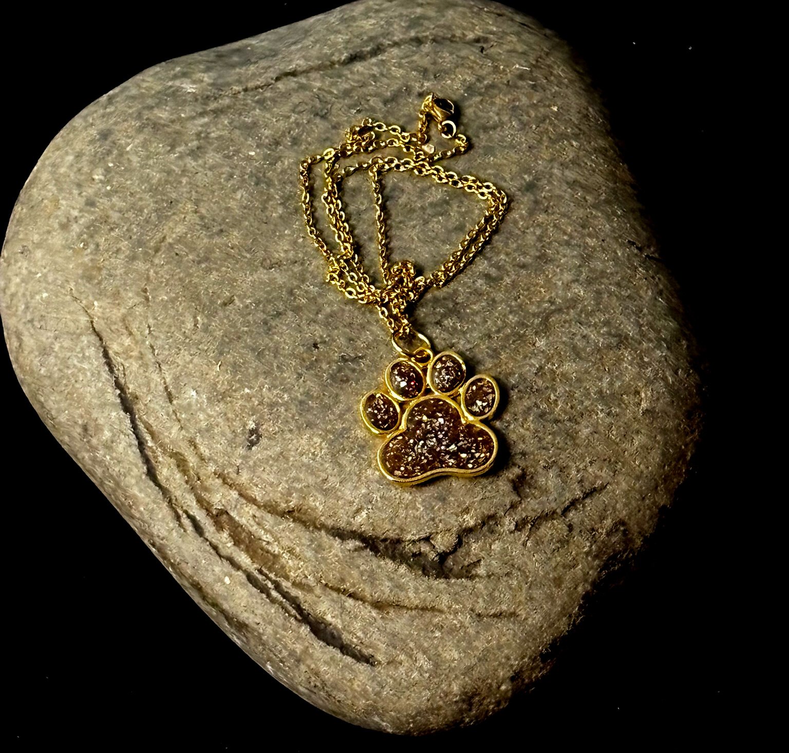Includes: 29mm by 32mm Large Stainless Steel Dog Paw Memory Necklace Gold