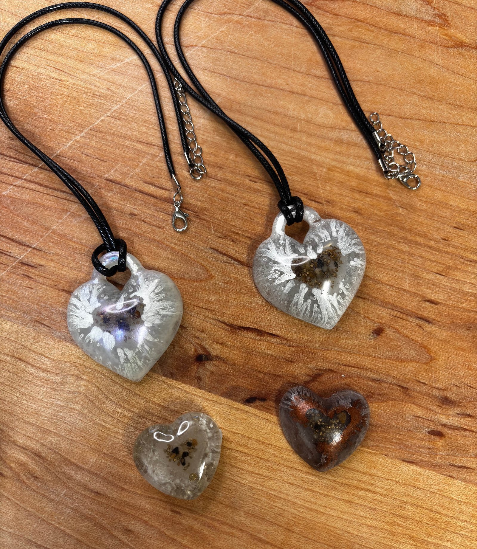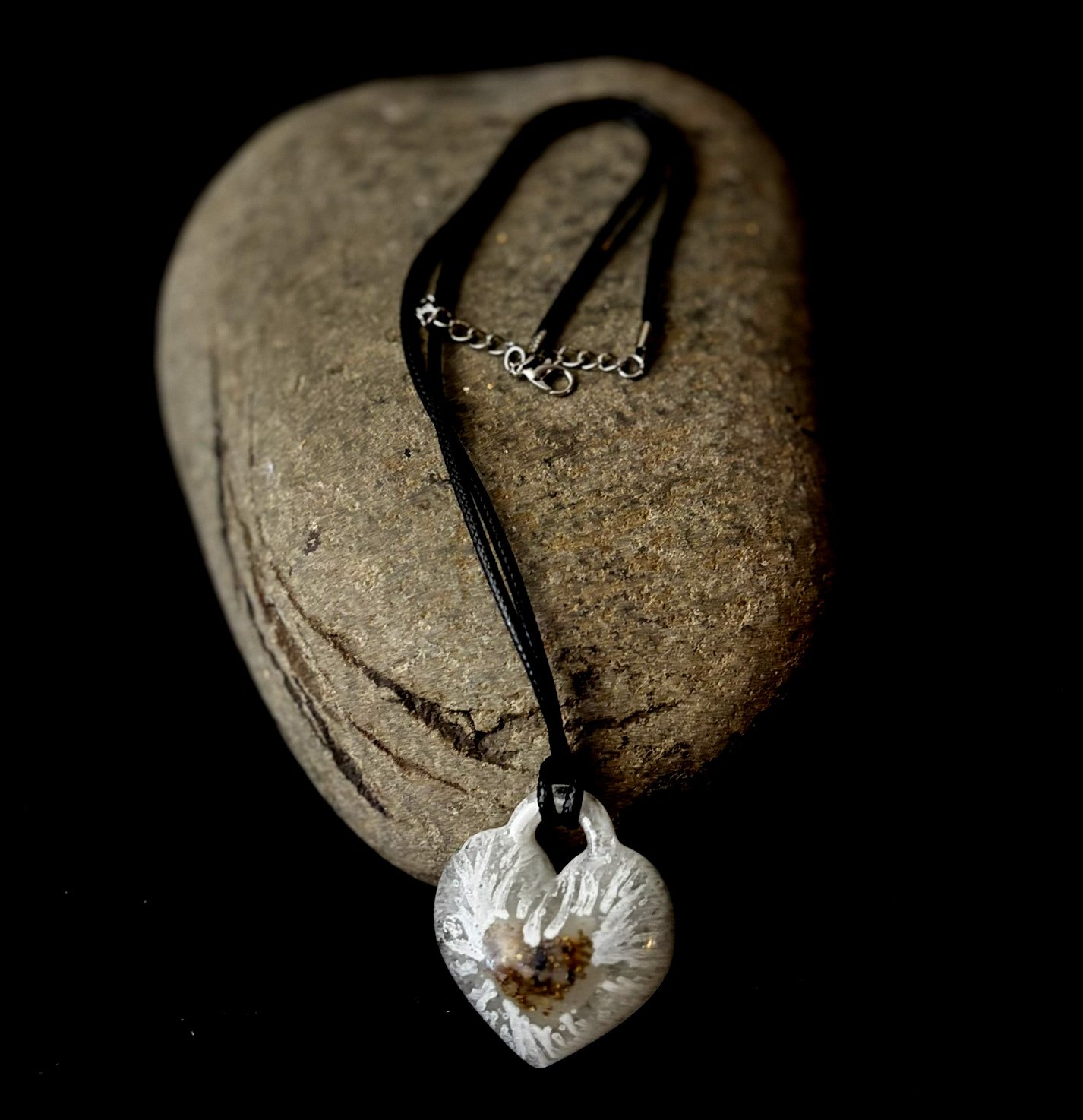 Includes: Resin Heart in a Heart with Silver Strings and Ashes 1.5 inches by 2 inches